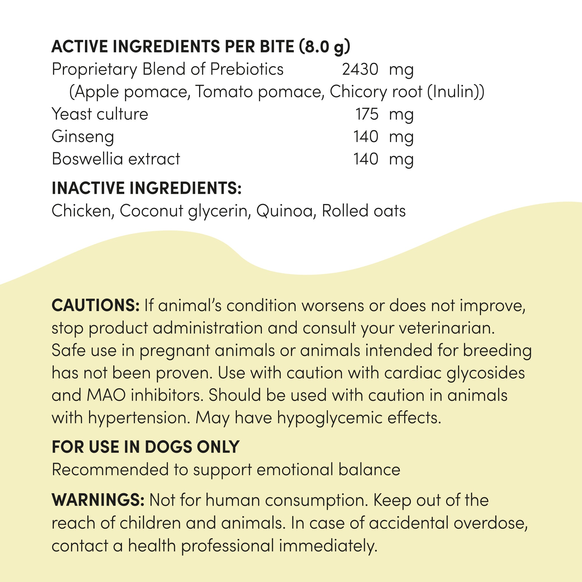 These tasty bites are infused with natural adaptogens like Ginseng and Boswellia, ensuring your pet's well-being from the inside out. Why? Because 90% of mood elevating serotonin is found in the gut! Healthy Gut = Healthy Body = Happy Mind.